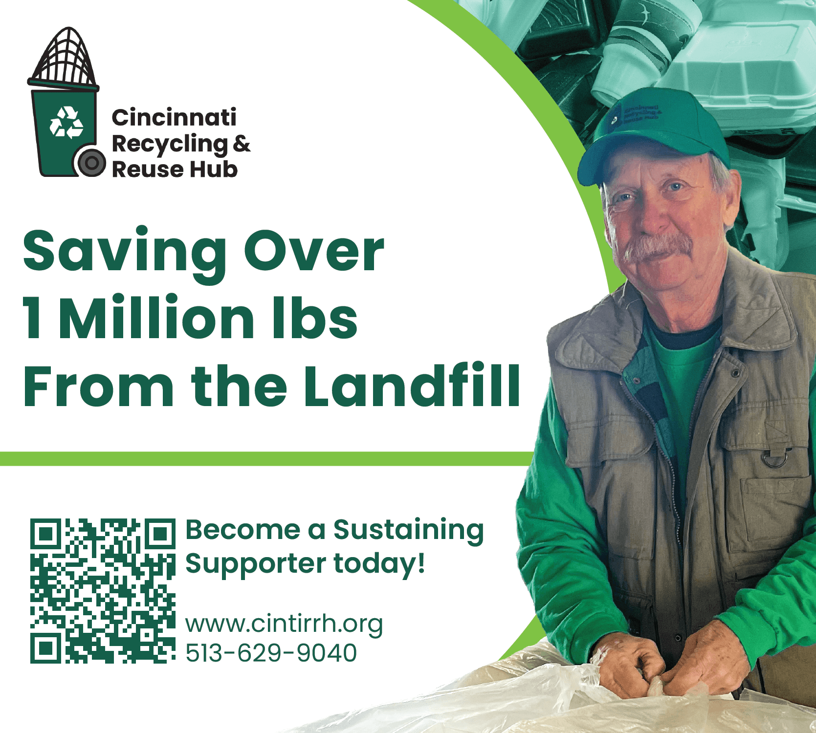 Cincinnati Recycling & Reuse Hub is a non-profit that reduces the amount of waste going to landfills through their one-stop drop-off location where they accept items and materials that are recyclable and reusable, even some that are not permitted in traditional recycling bins.