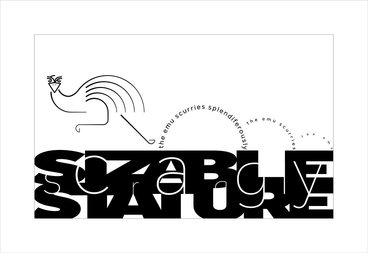 The Creature Mark is a graphic interpretation of a selected animal (the emu) using fundamental elements of design to communicate a number of unique physical, behavioral, and personality traits. Elements of design include point, line, shape, and type. I chose the emu because of its awkward shape and posture, persistent movement, and its curious personality.
