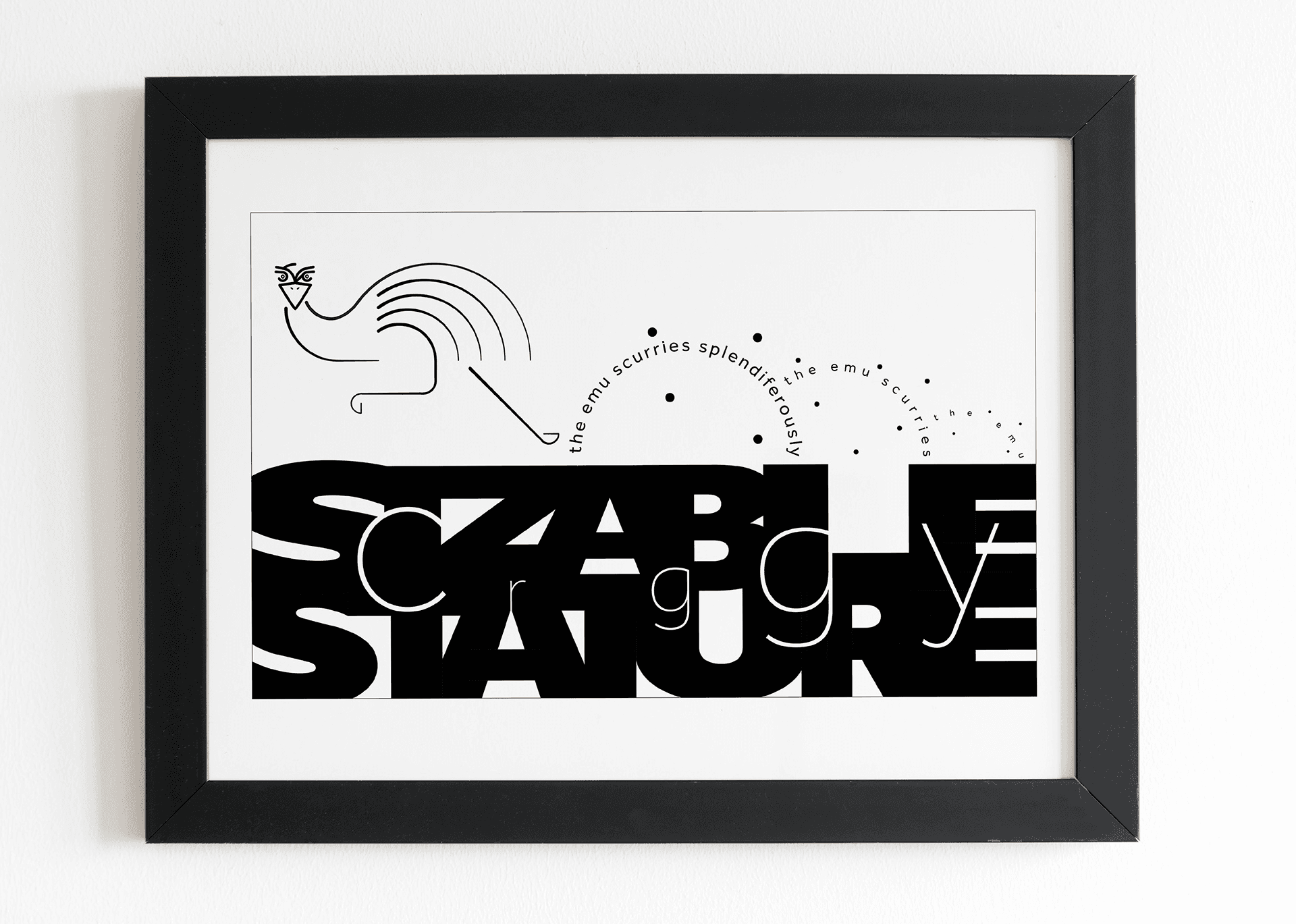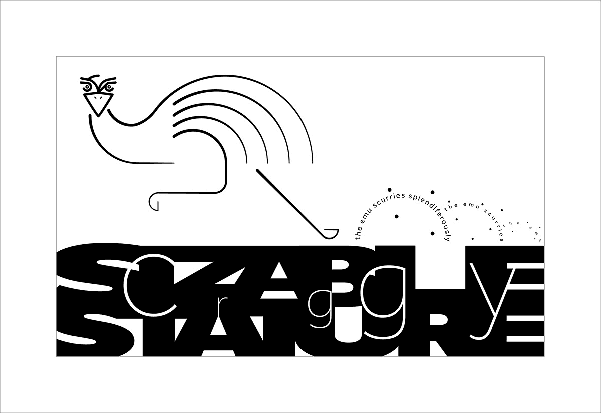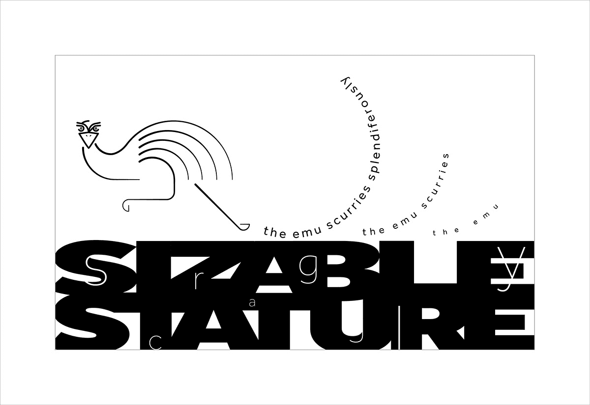Scraggly and sizable in stature, the emu scurries splendiferously.